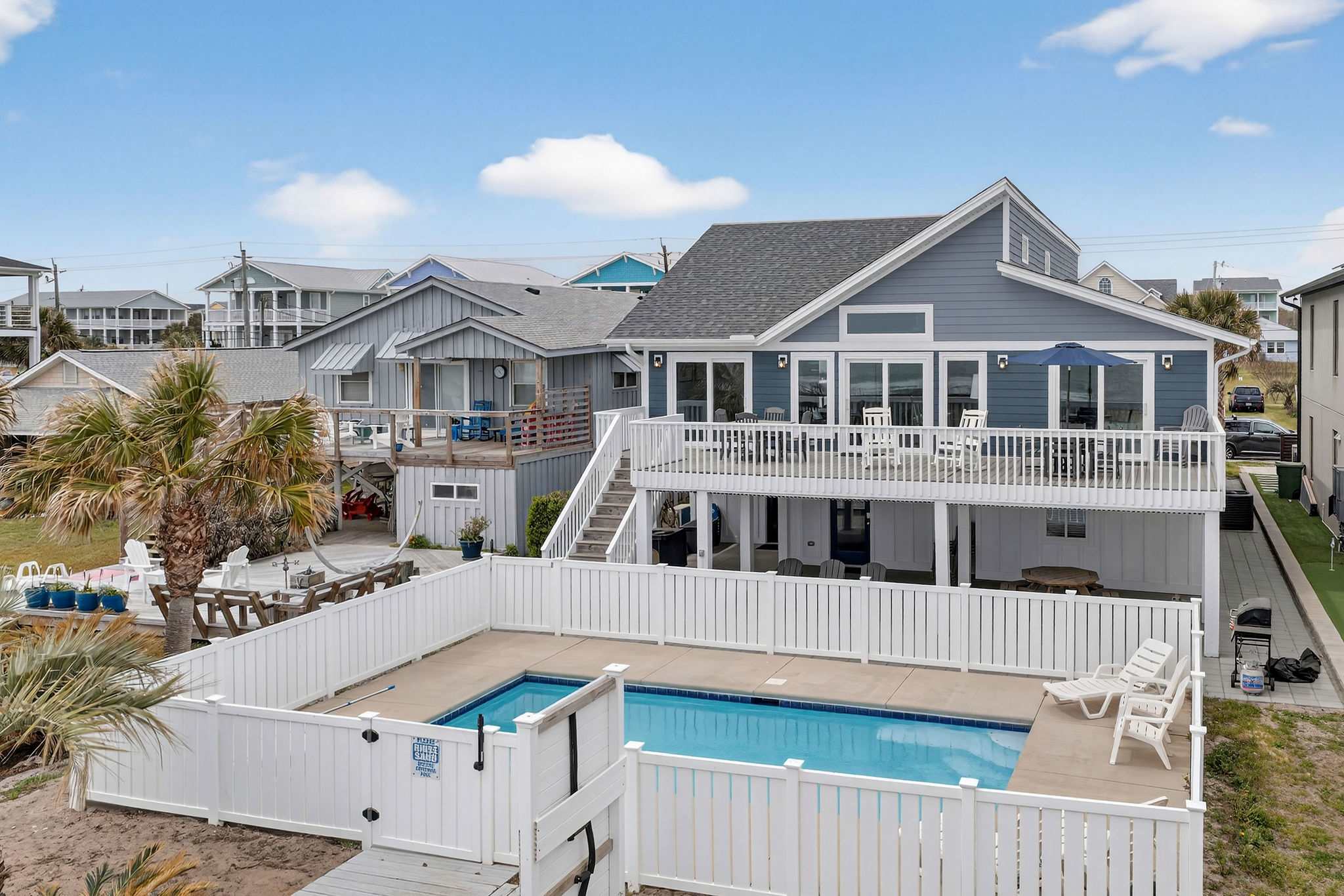 Indulge in coastal luxury at Sea Monster, a stunning 5-bedroom, 3-bathroom oceanfront retreat. Enjoy a private pool and direct beach access for the perfect blend of comfort and seaside bliss. Book now for an unforgettable coastal getaway! Remodeled oceanfront front